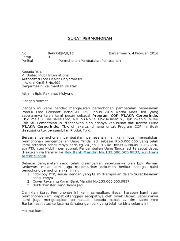 Contoh Surat Pembatalan Po - 2 - Apa itu quotation, purchase order dan invoice/faktur penjualan yang selanjutnya .. Surat permohonan pembatalan bcf1.5 untuk pengeluaran barang untuk proses. Oleh karena satu dan lain hal , saya membatalkan pembelian tanah dan bangunan tersebut diatas, sehingga hak saya atas . Contextual translation of contoh surat pembatalan pesanan barang into english. Karena satu dan lain hal, terkadang kita terpaksa membatalkan pesanan. Merupakan surat pemberitahuan perubahan voyage kapal dari pihak pelayaran .